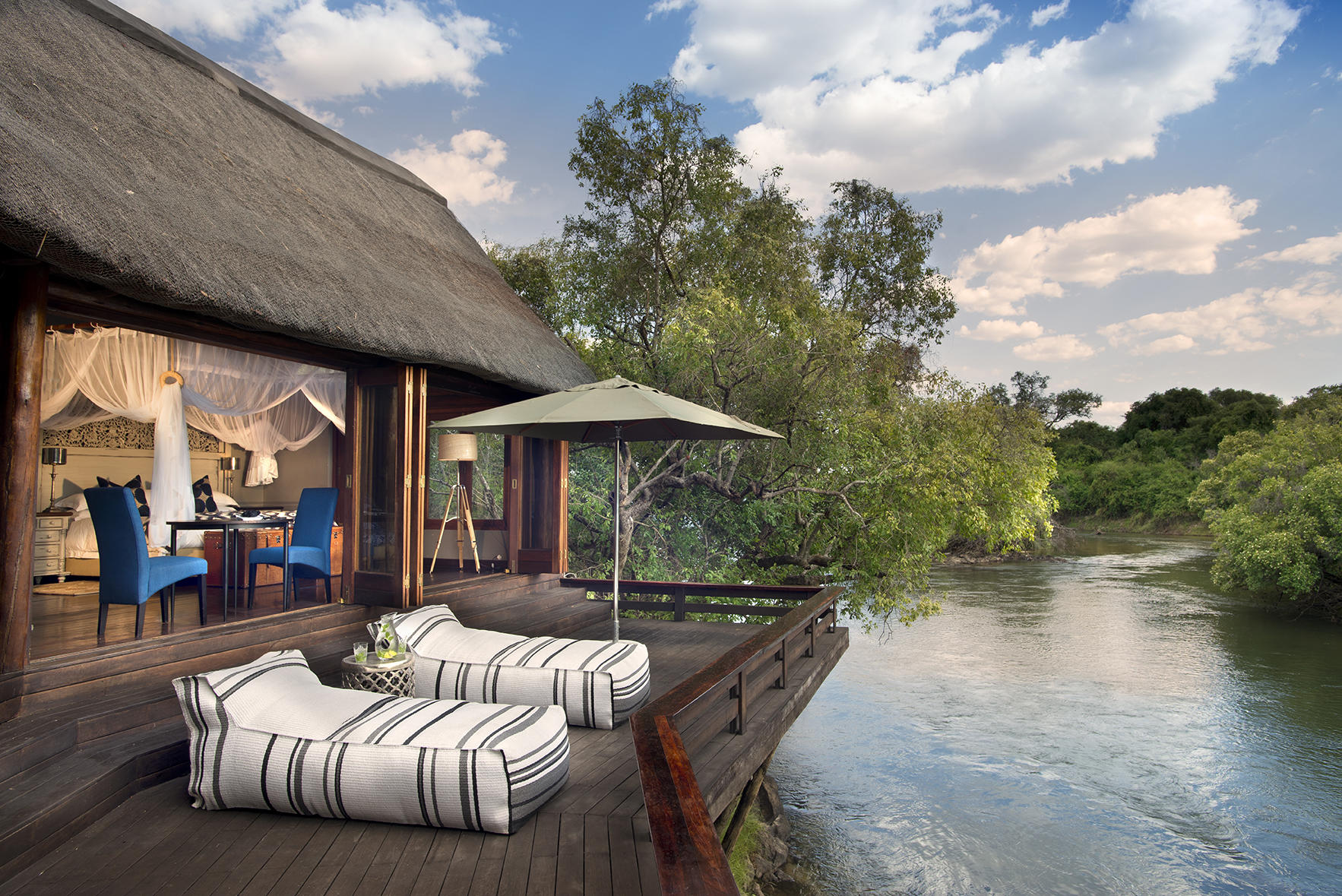 Experience Livingstone. Located near the Zambezi River in southwestern Zambia, the bustling town of Livingstone is famous as the home of the magnificent Victoria Falls. One of the original natural wonders of the world, the World Heritage Site is known locally as ‘The Smoke that Thunders’. This spectacle is accessible from both Zambia and Zimbabwe and is an ideal place to combine game viewing and water sports. There is much to do including excellent fishing, a thrilling bungee jump and arguably the best commercial whitewater rafting in the world. Visitors can hike around the falls, try zip lining or enjoy the incredible bridge swing. Those seeking more leisurely activities can take sunset cruises along the river, with champagne and snacks included, meander through the vibrant local Livingstone Market, or discover the region’s history and archaeology at the Livingstone Museum.