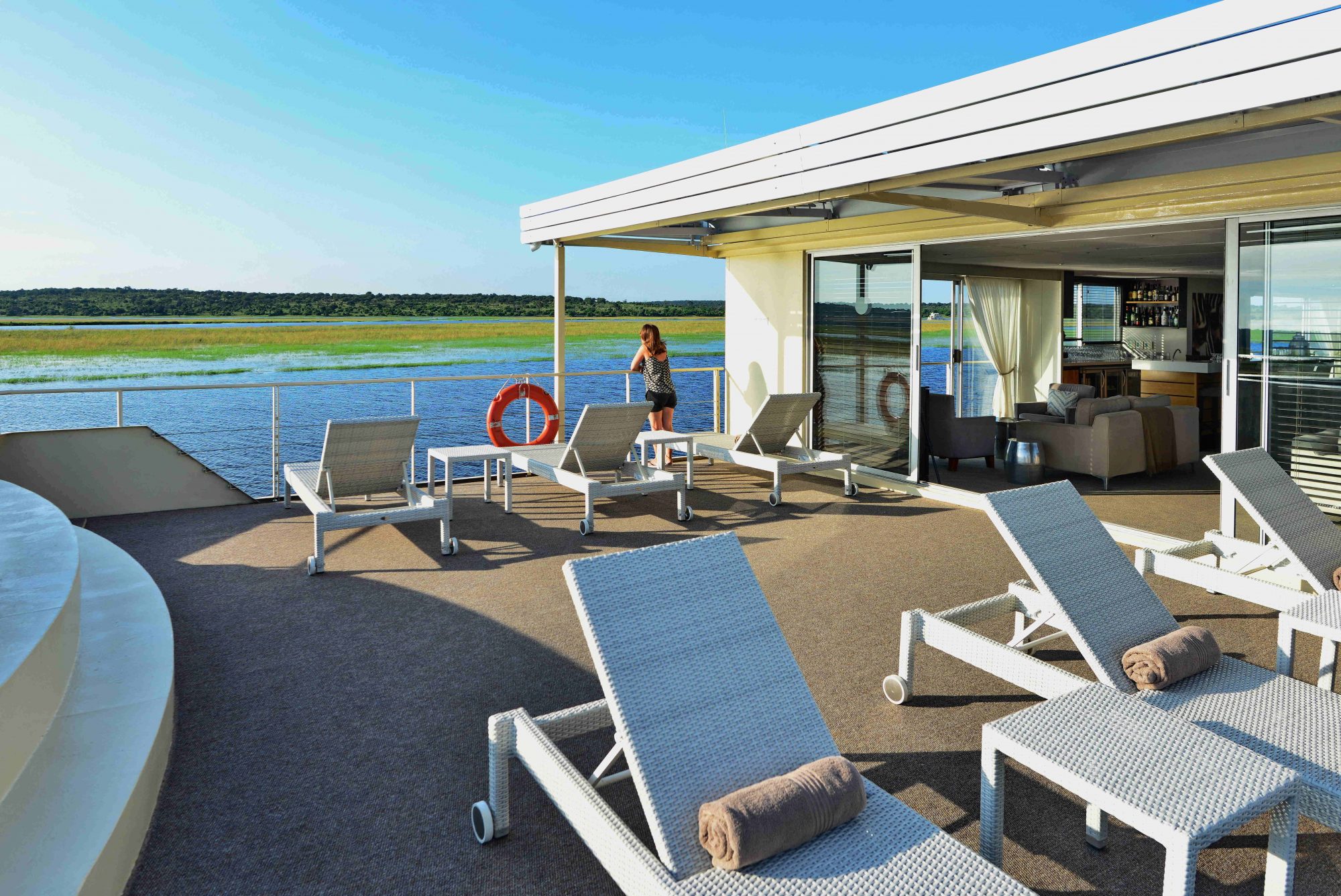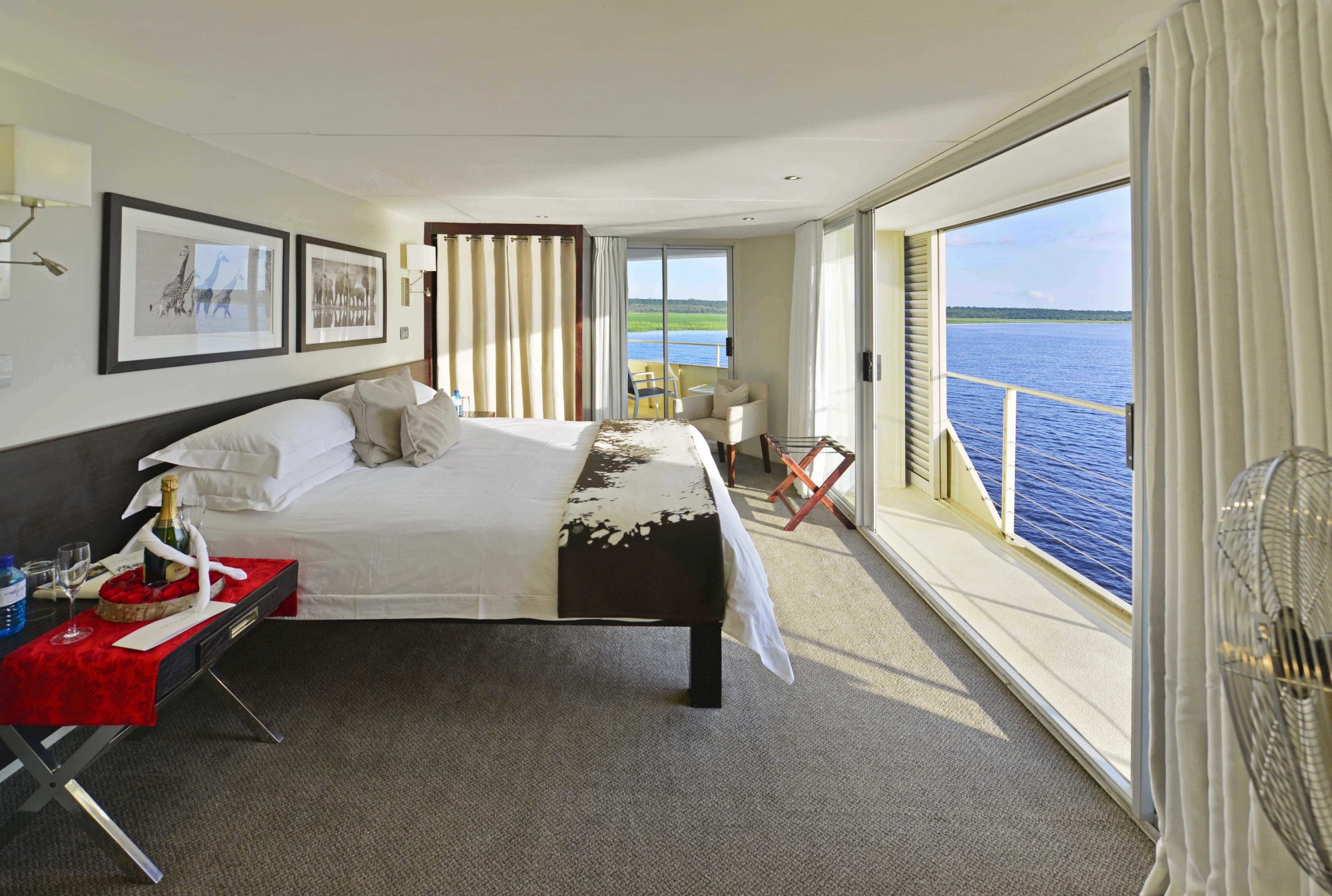 Hop aboard the Zambezi Queen and experience the Chobe River. The Chobe runs directly between Namibia and Botswana, allowing you to experience both countries simultaneously. You can enjoy village tours, sunset cruises, river safaris, and birding excursions.