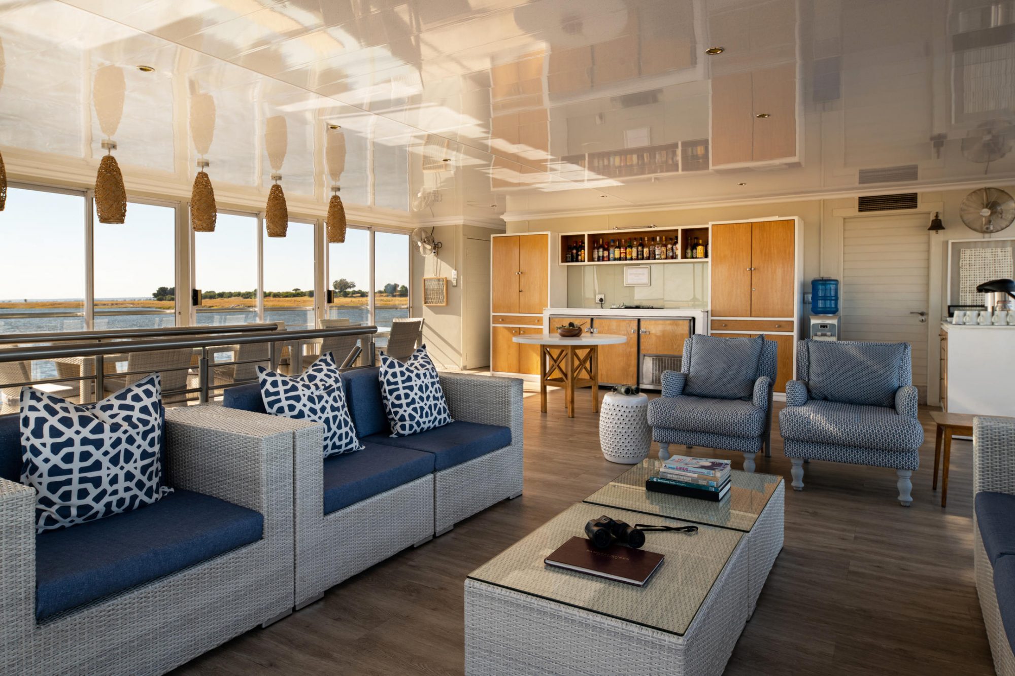 After the sunset cruise return back on board and freshen up before meeting your Captain on the upper deck. After a safety briefing, you’ll make your way to the dining room where you’ll be served a delicious three-course plated dinner along with an excellent choice of wines. Finish off with a hot drink or nightcap at the bar before retiring to the night sounds of Africa in the distance.
