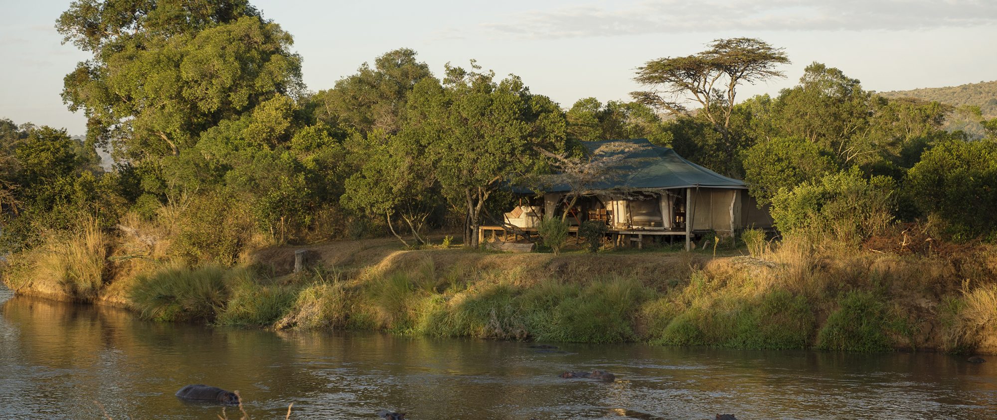Private charter to Nanyuki. Fly to Masai Mara. A small, intimate classic camp with tasteful interiors on the banks of the Mara river. Built along the riverbank, the tents’ private verandahs, open bathrooms and outdoor bathtubs provide the perfect look out for hippo pods in the Mara river and views over the Olooloo Escarpment. Mara North Conservancy offers undisturbed wildlife viewing and endless walking opportunities with knowledgeable guides.