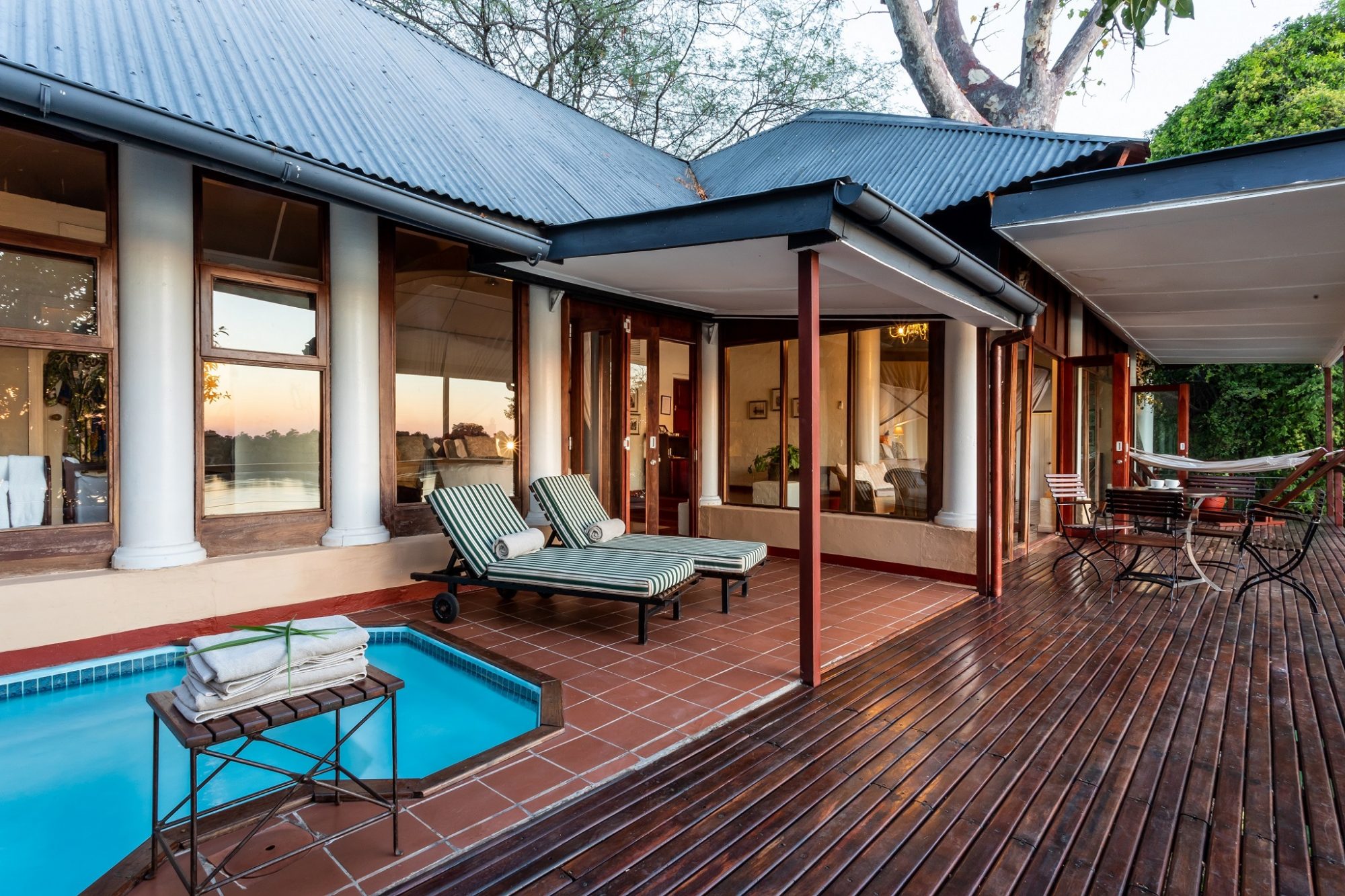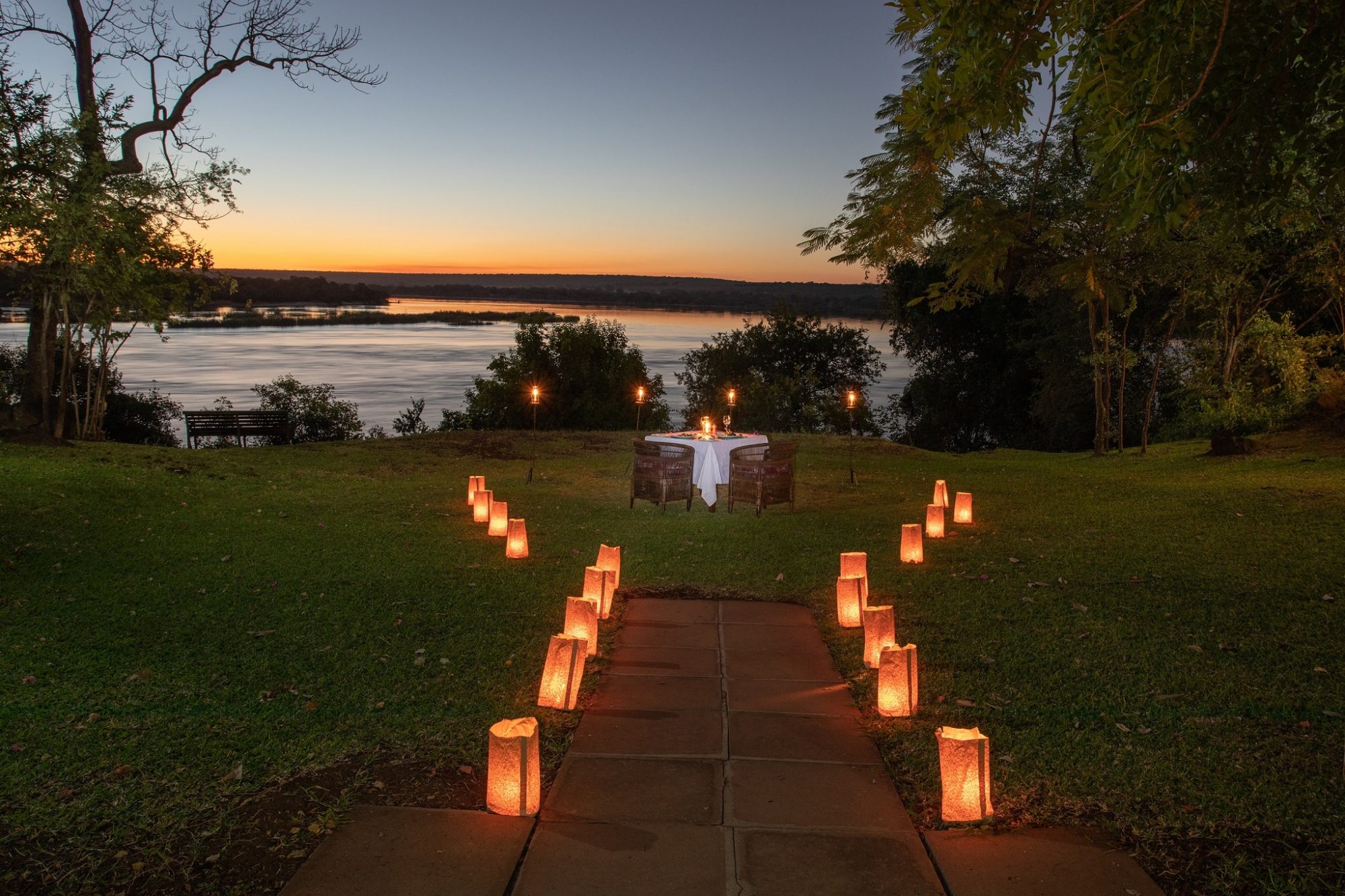 Make your way to Livingstone for your final days in Zambia. Located near the Zambezi River in southwestern Zambia, the bustling town of Livingstone is famous as the home of the magnificent Victoria Falls. One of the original natural wonders of the world, the World Heritage Site is known locally as ‘The Smoke that Thunders’. This spectacle is accessible from both Zambia and Zimbabwe and is an ideal place to combine game viewing and water sports. There is much to do including excellent fishing, a thrilling bungee jump and arguably the best commercial whitewater rafting in the world. Visitors can hike around the falls, try zip lining or enjoy the incredible bridge swing. Those seeking more leisurely activities can take sunset cruises along the river, with champagne and snacks included, meander through the vibrant local Livingstone Market, or discover the region’s history and archaeology at the Livingstone Museum.