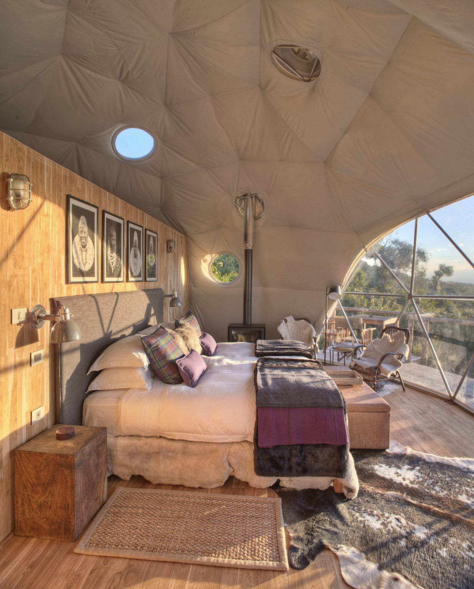 The Highlands redefines the Ngorongoro experience, raising the bar for low-impact yet high-style camps. Carefully positioned for maximum privacy high on the slopes of the Olmoti Crater, our guests enjoy sweeping views all the way to the Serengeti. The inspiration for the eight canvas geodesic domed suites draws from the traditional Maasai bomas that dot the landscape. Warm, intimate and contemporary, this is quite simply the perfect place from which to discover the wild and pristine Crater Highlands. At the heart of the camp is an authentic indoor fireplace designed to emulate the traditional East African campfire experience. Delve into the library or enjoy a drink from our whisky dome and unwind in comfort and style at the end of each rewarding day.