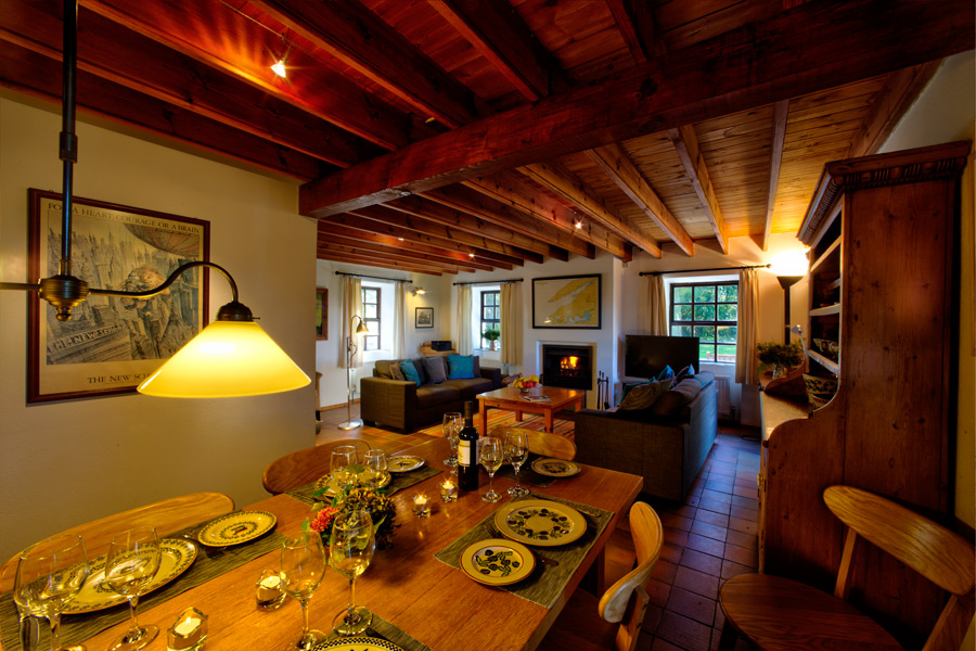 Situated on the peaceful hillside of Cashelane Farm overlooking Dunmanus Bay you will find Dunmanus House. Traditional in style it is built of old stone from ruined cottages. From the sheltered terrace, you can look out over the bay to distant hills or admire the pedigree cattle grazing nearby. The surrounding lawns make a safe playground for children and the sea is just a short stroll away across the fields.